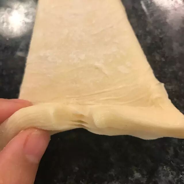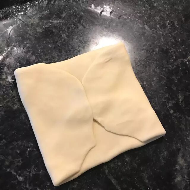 *两次三折后若面团不容易擀开,可送入冰箱冷藏半小时;