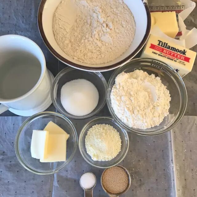 1. 准备好所需食材,水在光波炉中加热10-20秒,器皿中倒入酵母先酵化,直到表面起泡;